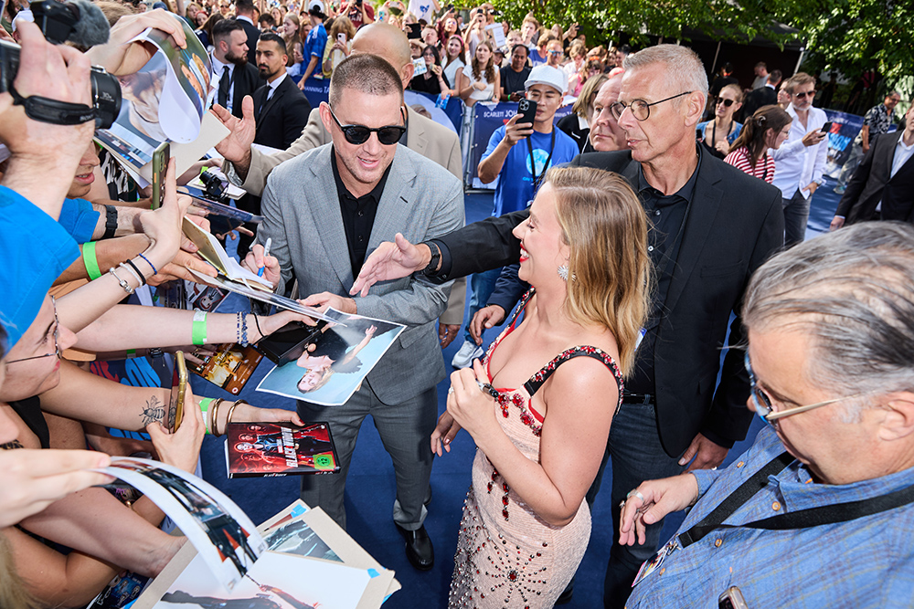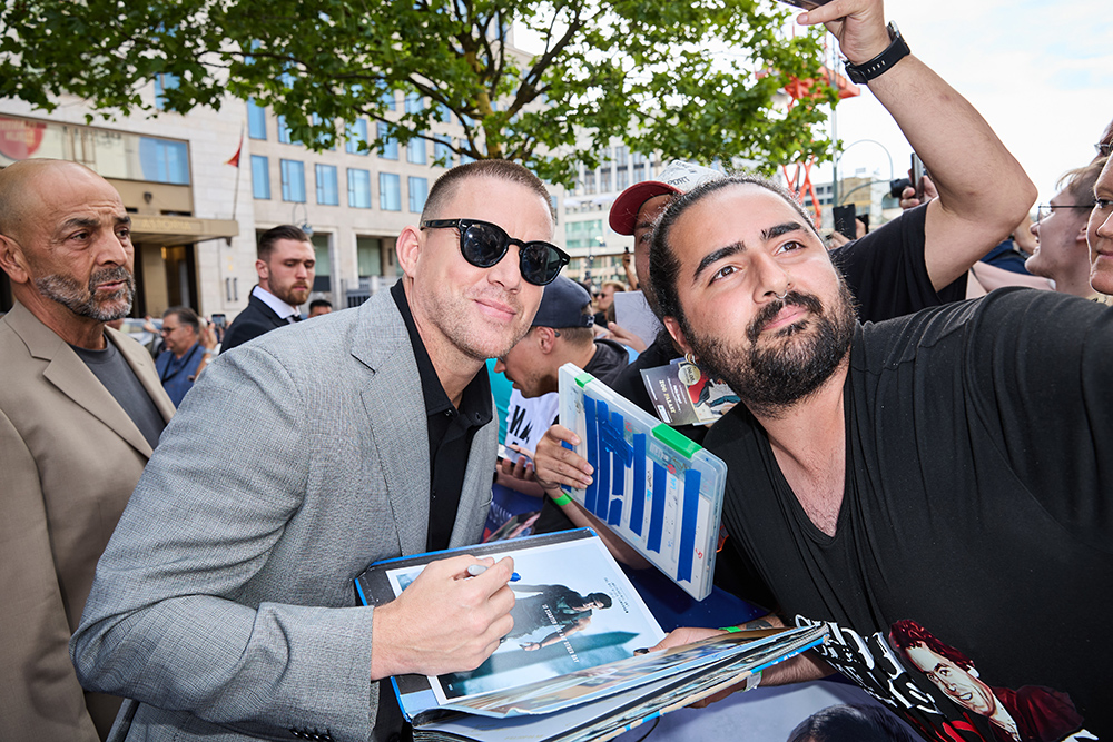 Zahlreiche Fans waren am Nachmittag zum Premierenkino, dem Berliner Zoo Palast, gekommen, um die beiden Hollywood-Stars aus nächster Nähe erleben zu können. Und sie wurden nicht enttäuscht: Scarlett Johansson und Channing Tatum nahmen sich viel Zeit für Selfies und Autogramme und versprühten jede Menge Hollywood-Glamour auf dem von einer Mondlandschaft inspirierten blauen Premierenteppich.