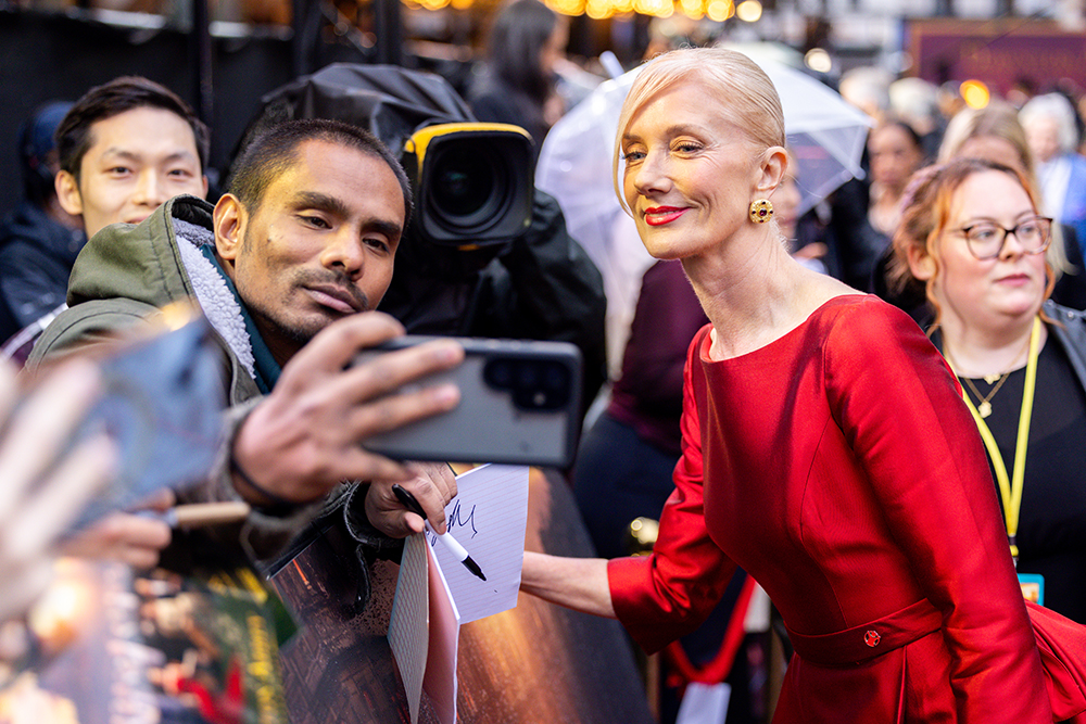 Gemeinsam mit Regisseur Simon Curtis sowie Drehbuchautor und Serienschöpfer Julian Fellowes begrüßten sie trotz englischem Regenwetter zahlreiche Fans am roten Teppich und stellten DOWNTON ABBEY: DAS GROSSE FINALE dem begeisterten Publikum im Odeon Luxe vor.