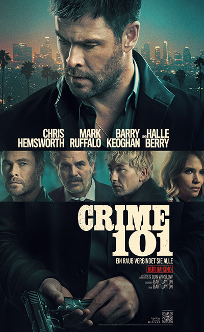 Amazon MGM Studios präsentiert mit CRIME 101 eine Produktion von A Working Title, RAW und Wild State Production in Zusammenarbeit mit The Story Factory. In den Hauptrollen spielen Chris Hemsworth („Furiosa: A Mad Max Saga”), Halle Berry („Moonfall“) und Mark Ruffalo („Poor Things“). In weiteren Rollen sind Barry Keoghan („Saltburn”), Monica Barbaro („Like A Complete Unknown”), Corey Hawkins („Die letzte Fahrt der Demeter”), Jennifer Jason Leigh („The Hateful 8“) und Nick Nolte („Angel Has Fallen“) zu sehen.