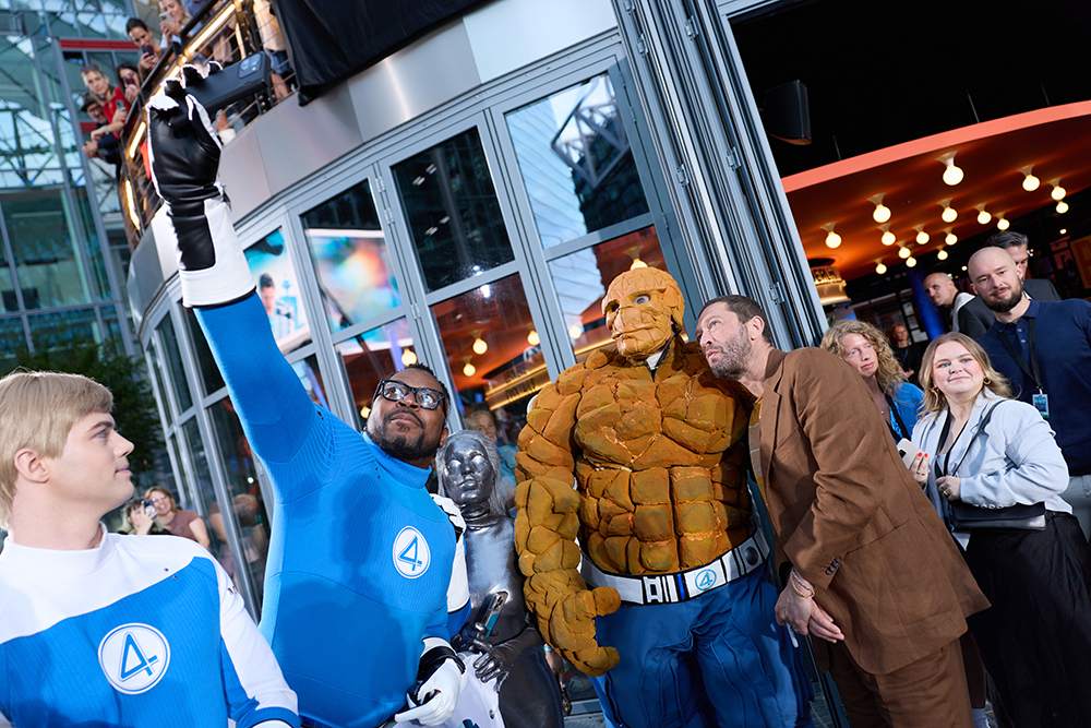 Fantastische 1960s Stimmung in Berlin! Am 08.07.2025 waren in der Hauptstadt zum ersten Mal weltweit 25 Minuten aus dem mit galaktischer Vorfreude erwarteten Film zu sehen, bevor Pedro Pascal, Vanessa Kirby, Joseph Quinn und Ebon Moss-Bachrach hunderte Fans am blauen Teppich des neuen Centers am Potsdamer Platz begrüßten.