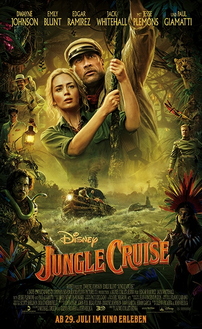 Erfolgs-Regisseur Jaume Collet-Serra („Unknown Identity“, „The Commuter“) liefert mit JUNGLE CRUISE ein gigantisches Kinoerlebnis voller Action, Abenteuer und jeder Menge Humor. Emily Blunt überzeugt in der Rolle der furchtlosen wie ideenreichen Forscherin Lilly Houghton. Für ihr Amazonas-Abenteuer holt sie sich Unterstützung von dem chaotischen Kapitän Frank, der von niemand geringerem als dem charmanten Hollywood-Kraftpaket Dwayne „The Rock“ Johnson gespielt wird. In weiteren Rollen sind u.a. Jack Whitehall („Der Nussknacker und die vier Reiche“), als Lillys Bruder zu sehen, sowie die erfolgreichen Charakterdarsteller Jesse Plemons („Fargo“, „Vice - Der zweite Mann“), Paul Giamatti („Sideways“, „Billions“) und Edgar Ramirez („Point Break“, „Girl on the Train“).