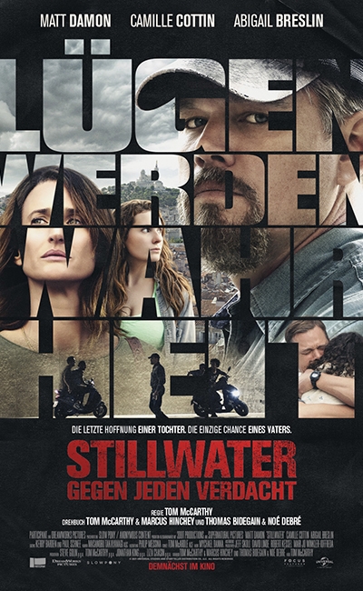 Aufgeben ist für Bill, der mit der Zeit eine enge Beziehung zu der Französin Virginie (Camille Cottin) und deren kleiner Tochter aufbaut, keine Option. Je tiefer er allerdings in den brisanten und für Allison immer aussichtsloseren Fall verwickelt wird, desto gefährlicher wird die Situation auch für ihn selbst. Bald muss er sich entscheiden, wie weit zu gehen er auf dieser Reise bereit ist. Nach seinem als Bester Film und für das Beste Originaldrehbuch ausgezeichneten sowie mit zwei Oscars® prämiertem Film Spotlight meldet sich Tom McCarthy nun mit dem spannenden und packenden Thriller STILLWATER – GEGEN JEDEN VERDACHT zurück.