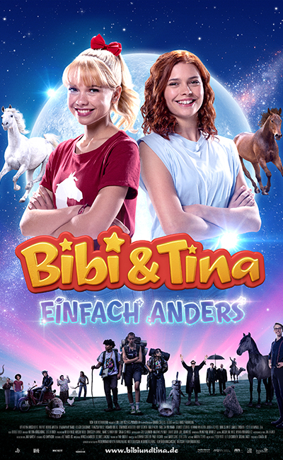 Bibi (l: Katharina Hirschberg) und Tina (r: Harriet Herbig-Matten) begrüßen drei neue Feriengäste auf dem Martinshof. Sie nennen sich Disturber, Silence und Spooky und sind einfach anders: Silence spricht nicht, Spooky glaubt an Außerirdische und Disturber sagt Bibi den Kampf an.