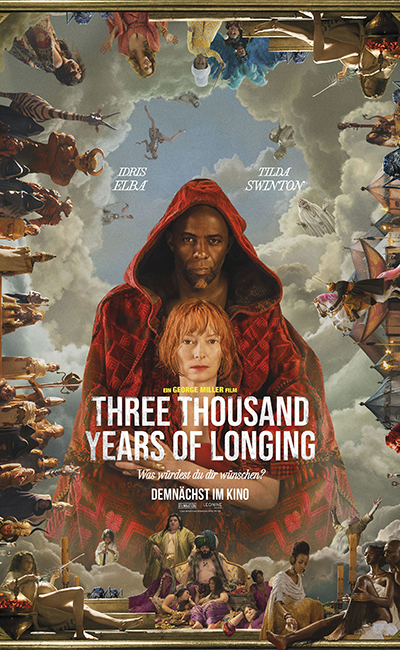 THREE THOUSAND YEARS OF LONGING ist eine Geschichte wie aus 1001 Nacht – magisch und mitreißend zugleich. Regisseur und Oscar©-Preisträger George Miller („Mad Max: Fury Road“) entführt die Zuschauer in eine fantastische Welt mit überlebensgroß prachtvollen Bildern und einer berührenden Liebesgeschichte.