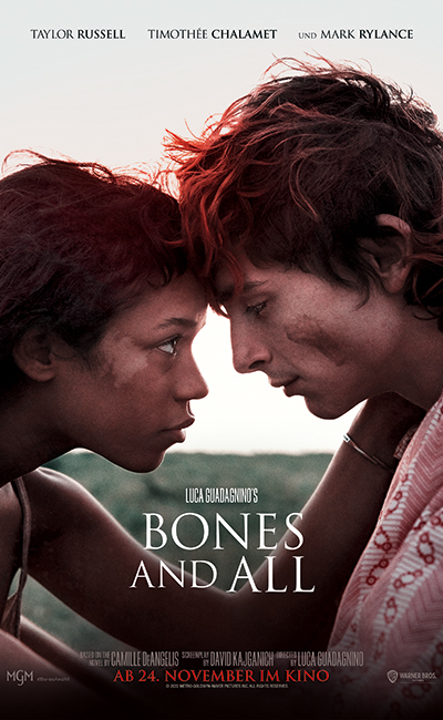 Zu sehen sind in „Bones and All“ unter anderem Taylor Russell („Waves“, „The Heart Still Hums“), die bei den diesjährigen Filmfestspielen von Venedig mit dem Marcello Mastroianni Award als Beste Nachwuchsdarstellerin ausgezeichnet wurde, Timothée Chalamet (Oscar®-nominiert für „Call Me by Your Name“, „Dune“), Michael Stuhlbarg („Call Me by Your Name“, „Shape of Water: Das Flüstern des Wassers“), André Holland („Seitenwechsel“, „Moonlight“), Chloë Sevigny („We Are Who We Are“, „American Horror Story“), David Gordon Green („Halloween Ends“, „Massive Talent“), Jessica Harper („Suspiria: In den Krallen des Bösen“, „Minority Report“), Jake Horowitz („Adam Bloom“, „Die Weite der Nacht“) und Mark Rylance (Oscar-Preisträger für „Bridge of Spies – Der Unterhändler“, „Wolf Hall“).