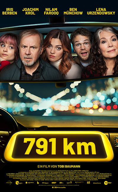 Verantwortlich dafür, dass die fünf Taxi-Passagiere dem Zuschauer mit jedem Kilometer mehr ans Herz wachsen, ist neben Regisseur Tobi Baumann (Faking Hitler) auch das hochkarätige Schauspiel-Ensemble: Iris Berben (Der Vorname) als exzessiv junggebliebene und weltoffene Alt-68erin, Joachim Król (Der Junge muss an die frische Luft) als misstrauisch grantelnder Taxifahrer, Nilam Farooq (Contra) als dauergestresste Startup-Unternehmerin, Ben Münchow (Weil wir Champions sind) als ihr allzeit entspannter Freund und Lena Urzendowsky (Wir Kinder vom Bahnhof Zoo) als scheinbar naive Zufalls-Mitfahrerin mit exzellenter Beobachtungsgabe. Die Idee zu 791 km lieferte Tobi Baumann, für das Drehbuch ist Gernot Gricksch (Das Leben ist nichts für Feiglinge) verantwortlich.