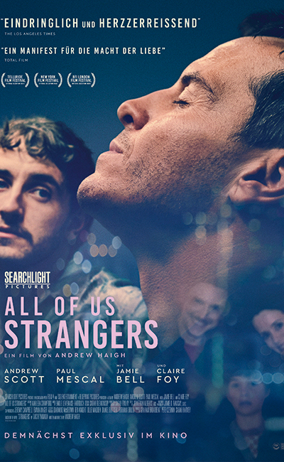 Mit ALL OF US STRANGERS präsentiert Searchlight Pictures, in Zusammenarbeit mit Film4 und TSG Entertainment, eine Blueprint Pictures Produktion. Produziert wurde ALL OF US STRANGERS von Graham Broadbent, Pete Czernin, Sarah Harvey. Regie führte Andrew Haigh („45 Years“, „Weekend“) der basierend auf dem Roman „Sommer mit Fremden” von Taichi Yamada, auch das Drehbuch verfasste. Für die Hauptrollen ist es Andrew Haigh gelungen ein brillantes Starensemble vor der Kamera zu vereinen, allen voran Andrew Scott („1917”, „Spectre”, „Fleabag”), Paul Mescal („Aftersun”, „God’s Creatures”), Jamie Bell („Rocketman”) und Claire Foy („The Crown”, „Aufbruch zum Mond”).