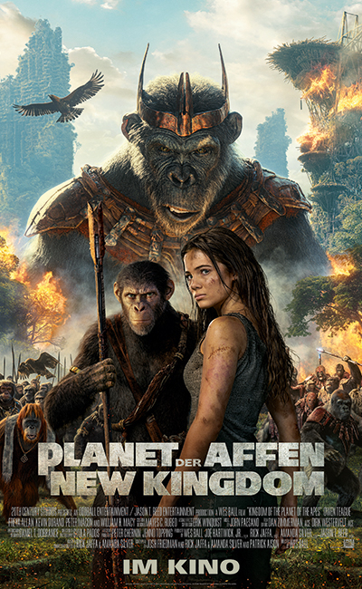 Mit dem neuesten Teil der weltweit beliebten Reihe, haucht Regisseur Wes Ball dem legendären Franchise neues Leben ein. PLANET DER AFFEN: NEW KINGDOM spielt viele Jahrzehnte nach Caesars Herrschaft, in einer Welt in der die Affen die dominierende, in Harmonie lebende Spezies sind und die Menschen nur noch ein Schattendasein führen. Während ein neuer, tyrannischer Affenanführer sein Imperium aufbaut, begibt sich ein junger Affe auf eine erschütternde Reise, die ihn dazu bringt, alles, was er über die Vergangenheit wusste, in Frage zu stellen und Entscheidungen zu treffen, die nicht nur die Zukunft der Affen, sondern auch die der Menschen bestimmen werden.