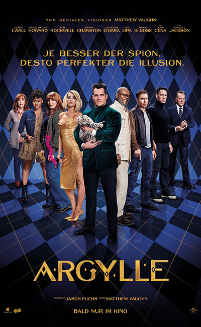 Zum Top-Cast von ARGYLLE gehören neben Howard und Rockwell u. a. Henry Cavill (The Witcher), John Cena (Fast & Furious 10), Oscar®-Preisträgerin Ariana DeBose (West Side Story), Grammy-Preisträgerin und Pop-Superstar Dua Lipa (Barbie), Emmy-Preisträger Oscar®-Kandidat Bryan Cranston (Breaking Bad), Emmy-Preisträgerin und Comedy-Ikone Catherine O’Hara (Schitt’s Creek), Sofia Boutella (Atomic Blonde) sowie der legendäre Samuel L. Jackson (Pulp Fiction). Die Rolle von Kater Alfie übernimmt Chip, der im echten Leben ein sehr prominentes Frauchen hat: Supermodel Claudia Vaughn (geborene Schiffer). ARGYLLE wurde von Matthew Vaughn nach einem Drehbuch von Jason Fuchs (Wonder Woman) inszeniert. Darüber hinaus produzierten Vaughn und Fuchs den Film zusammen mit Adam Bohling (Kingsman-Filme) und David Reid (Rocketman).