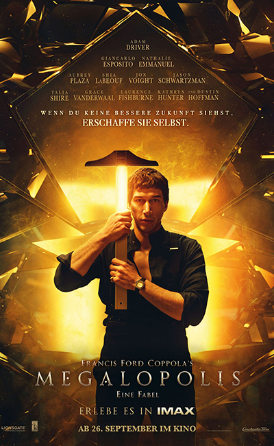 Mit MEGALOPOLIS hat sich Francis Ford Coppola, Schöpfer zeitloser filmischer Großwerke wie der „Die Pate“-Trilogie oder „Apocalypse Now“, fünffacher Oscar-Gewinner und zweifacher Cannes-Sieger, den Traum eines letzten Meisterwerks erfüllt: ein Science-Fiction-Film, wie es noch keinen gab, voller unvergesslicher Bilder und visionärer Ideen.