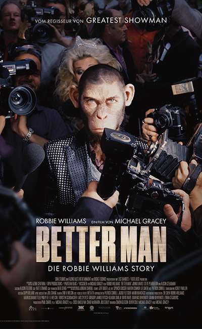 Vom unsicheren Jungen aus Stoke-on-Trent zum gefeierten Pop-Star: Die Geschichte von Robbie Williams ist weltbekannt, wurde bislang aber weder fürs Kino noch so überbordend-originell wie in Michael Graceys Biopic BETTER MAN – DIE ROBBIE WILLIAMS STORY erzählt. Schon in seinem gefeierten Debüt GREATEST SHOWMAN (2018) verwob der Ausnahmeregisseur gekonnt Musicalelemente, Choreografien, visuelle Effekte und eine emotionale Geschichte zu einem mitreißenden Spektakel.