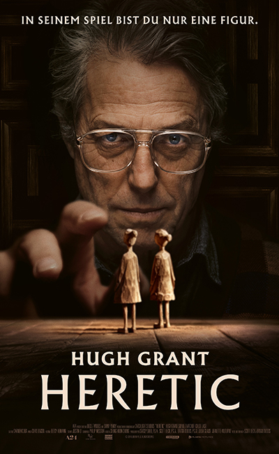 Beim Toronto International Film Festival feierte der Film seine Weltpremiere im Rahmen einer Special Presentation. Der vor allem für romantische Komödien bekannte Hugh Grant wirft sich in HERETIC mit viel Spielfreude in die Rolle eines durchtrieben-teuflischen Hobbyphilosophen, der zwei junge Missionarinnen (Sophie Thatcher und Chloe East) geschickt in eine arglistige Falle lockt, die sie an den tödlichen Rand ihres Glaubens bringt. Als ihnen der charmante Mr. Reed (Hugh Grant) grinsend die Pforten zu seinem Haus öffnet, tappen Schwester Paxton (Chloe East) und Schwester Barnes (Sophie Thatcher) nichts ahnend in seine Falle.