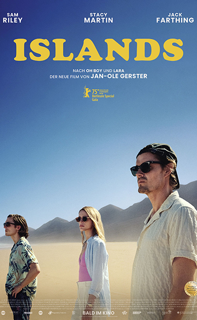 Jan-Ole Gerster („Oh Boy“, „Lara“) inszeniert mit ISLANDS einen vielschichtigen Thriller unter der gleißenden Sonne Fuerteventuras. Mittendrin der großartige Sam Riley („Control“, „Cranko“) als Tennislehrer Tom, der aus einem monotonen Alltag vermeintlicher Freiheit und Sorglosigkeit herausgerissen wird. An seiner Seite begeistern Stacy Martin („Nymphomaniac“, „Der Brutalist“) als geheimnisvolle Femme Fatale, die sich in Widersprüchen verstrickt und Jack Farthing („Riot Club“, „Rain Dogs“) als Ehemann, der Tom um seine Freiheit beneidet und mit seinem spurlosen Verschwinden die Geschehnisse in Gang setzt.