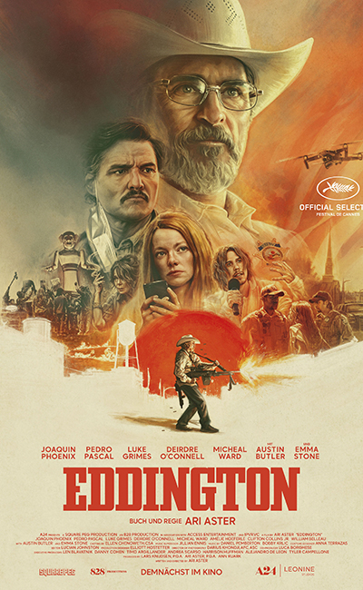 Als ein Mord die fragile Ordnung erschüttert, nimmt die Gewalt ihren Lauf. EDDINGTON - die vierte Zusammenarbeit des visionären Ausnahmeregisseurs und Autors Ari Aster („Beau is Afraid“, „Midsommar“) mit dem Erfolgsstudio A24 - feierte Weltpremiere im Wettbewerb der Internationalen Filmfestspiele von Cannes.
