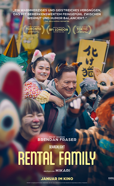 RENTAL FAMILY erzählt die Geschichte eines in Tokio lebenden US-Schauspielers (Brendan Fraser), der auf der Suche nach einem Sinn in seinem Leben ist, bis es ihm gelingt, einen ungewöhnlichen Job an Land zu ziehen.