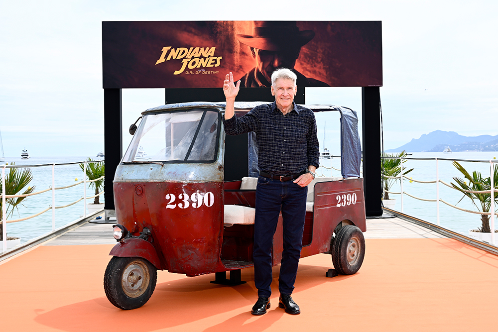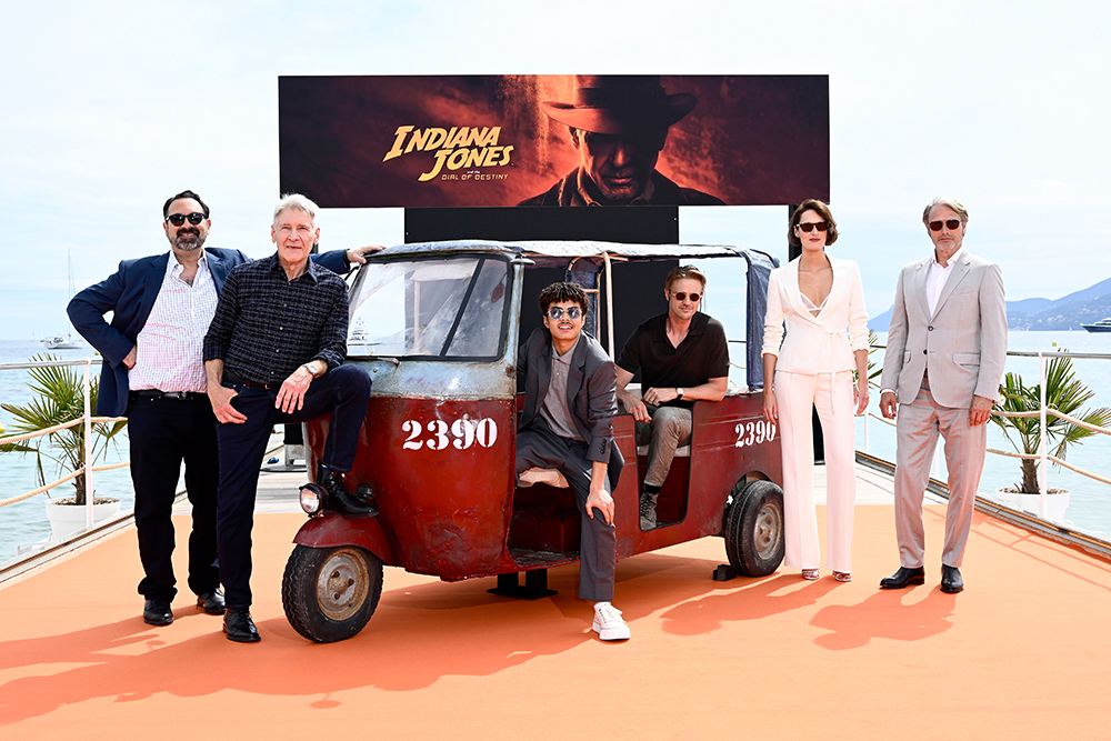 Und deshalb posierten dort Hauptdarsteller Harrison Ford, Phoebe Waller-Bridge, Mads Mikkelsen, Boyd Holbrook, Ethann Isidore sowie Regisseur / Co-Autor James Mangold vor einem filmechten Tuk-Tuk für die Fotografen.