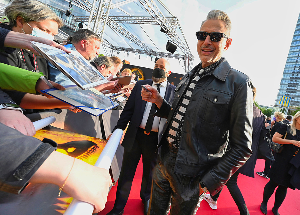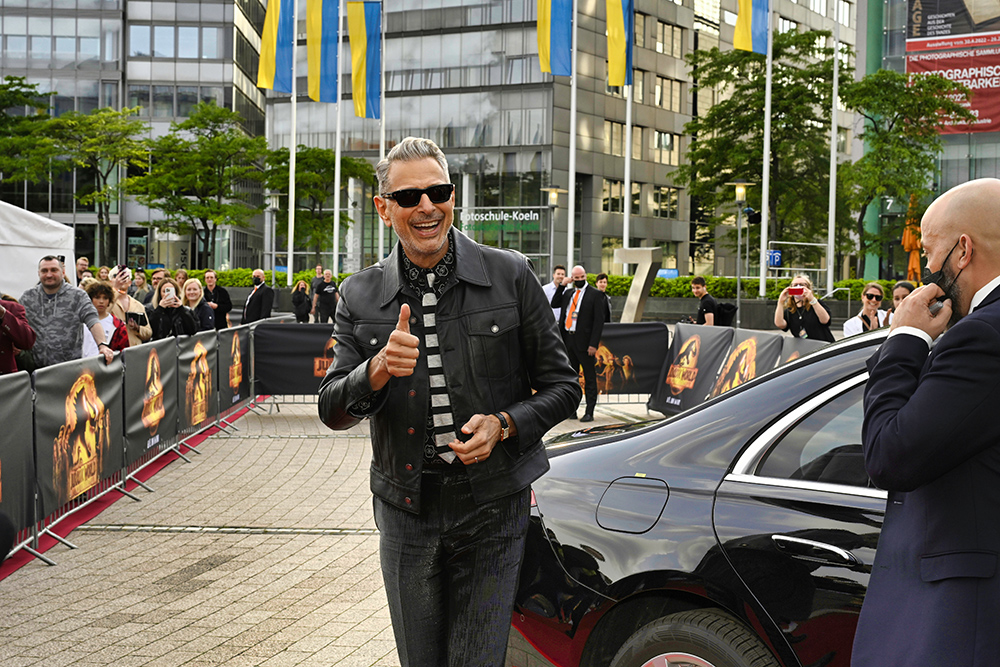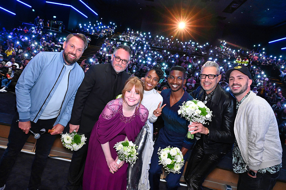 Zusammen mit dem Urzeitriesen waren Regisseur und Co-Drehbuchautor Colin Trevorrow, sowie die Hauptdarsteller Jeff Goldblum, Bryce Dallas Howard, DeWanda Wise und Mamoudou Athie angereist, um die Deutschlandpremiere ihres Films zu feiern.