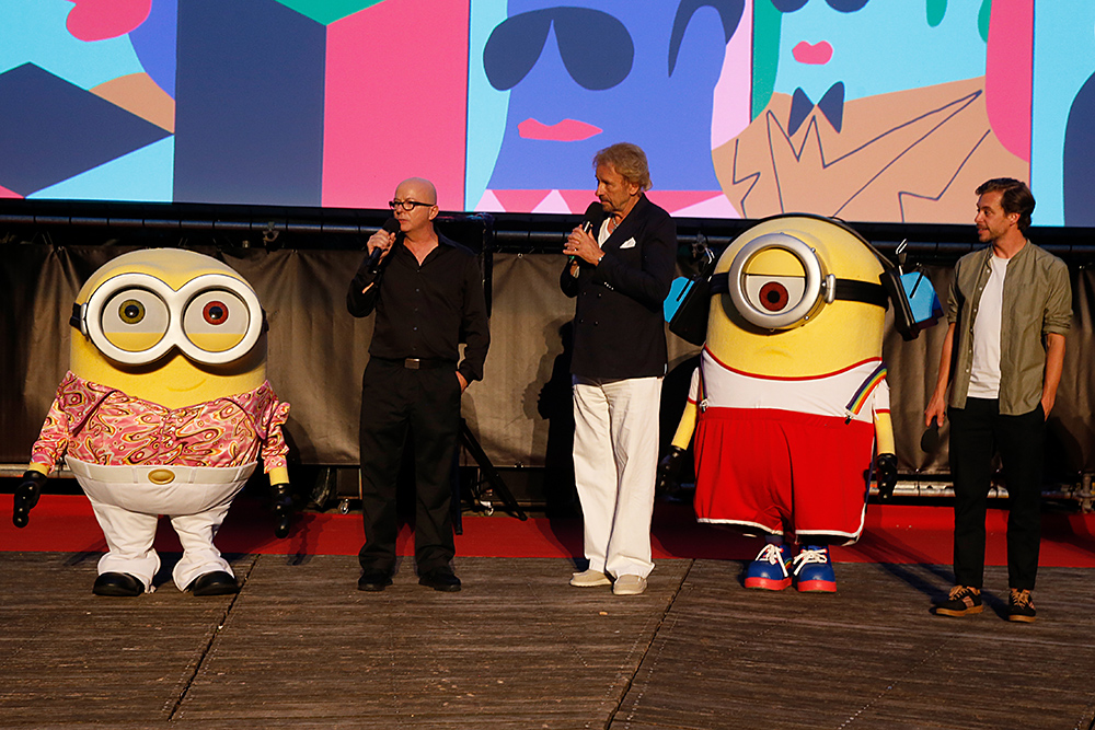 Begleitet wurden sie dabei von den Minions Stuart und Bob, die bereits vorab mit den großen und kleinen Fans für Fotos posierten. Sowohl in der Astor Filmlounge im Arri als auch im Open Air „Kino, Mond & Sterne“ begrüßte der Sprechercast das erwartungsvolle Publikum und plauderte in einem Q&A über die spannenden Synchronarbeiten zu dem Film.