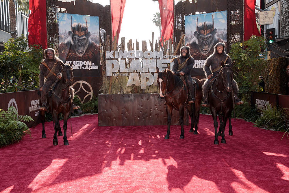 Am 03. Mai 2024 eroberte eine Kavallerie von Affen zu Pferd den Roten Teppich der Weltpremiere von PLANET DER AFFEN: NEW KINGDOM in Hollywood.